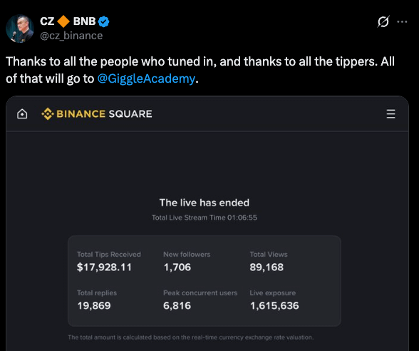 Last night, after an AMA session that lasted more than an hour on Binance Square, CZ posted a short tweet: