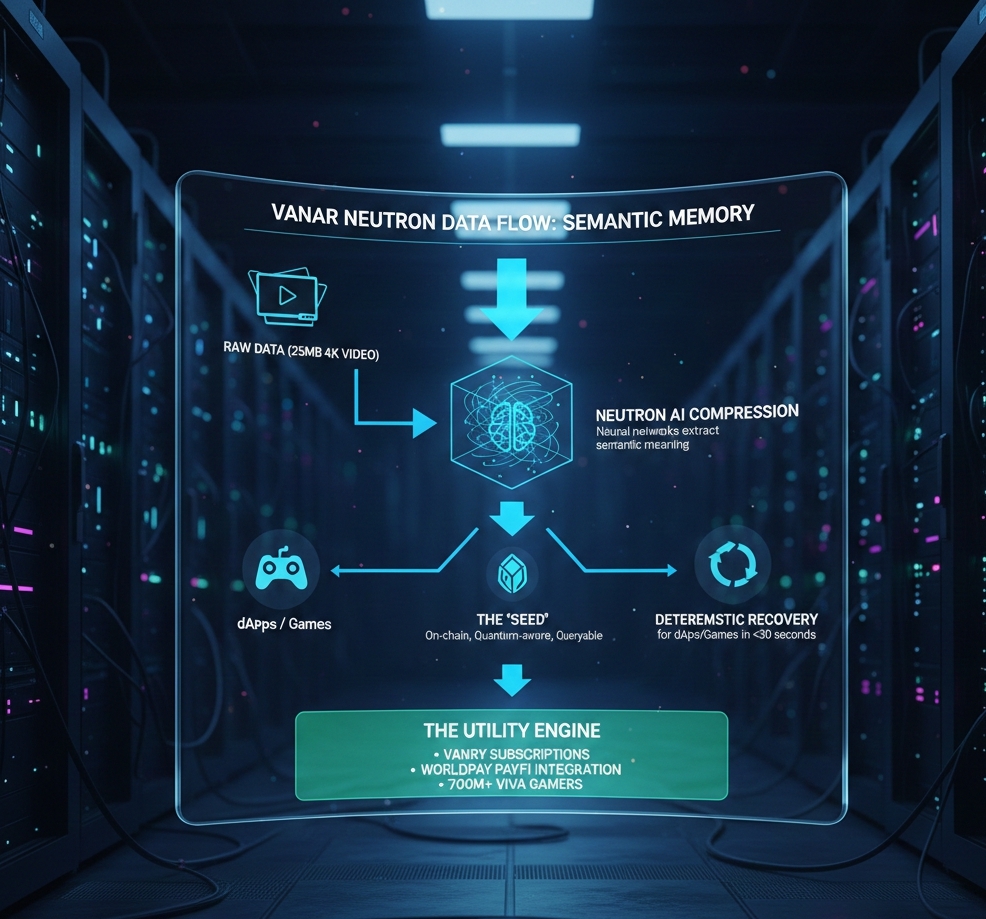Vanar noticed this gap and they built something called Neutron which launched last April. I watched the announcement video when it dropped and I will admit I rolled my eyes at the word semantic compression because that sounded like someone took AI buzzwords and smashed them into storage buzzwords to make investors happy. But I actually tested this thing. I took a ninety megabyte video file that would cost a fortune to store on Arweave and would be completely impossible to put directly on Ethereum. I ran it through Neutrons compression layer and it came out the other side as something like one hundred and eighty kilobytes of seed data that could live permanently on chain and be reconstructed by anyone with access to the network.