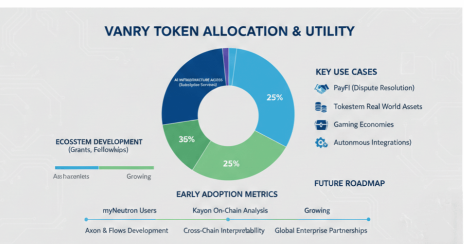 The VANRY token serves as the economic backbone of the ecosystem with multiple roles that include gas payments staking governance and access to AI infrastructure tools. As subscription based AI services expand token demand becomes increasingly linked to platform usage creating an economic model driven by real application activity.