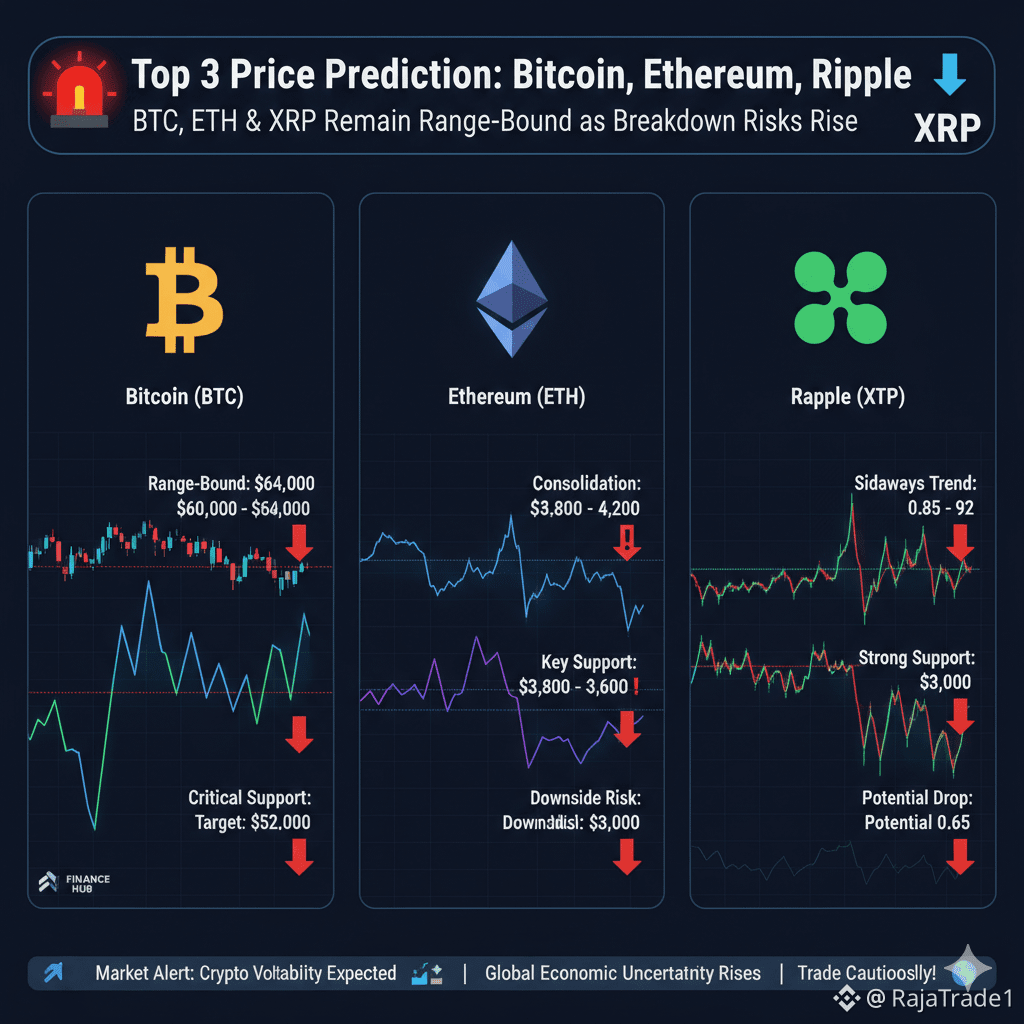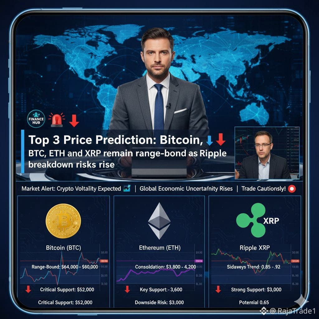 BTC, ETH, and XRP Remain Range-Bound as Breakdown Risks Rise 📉