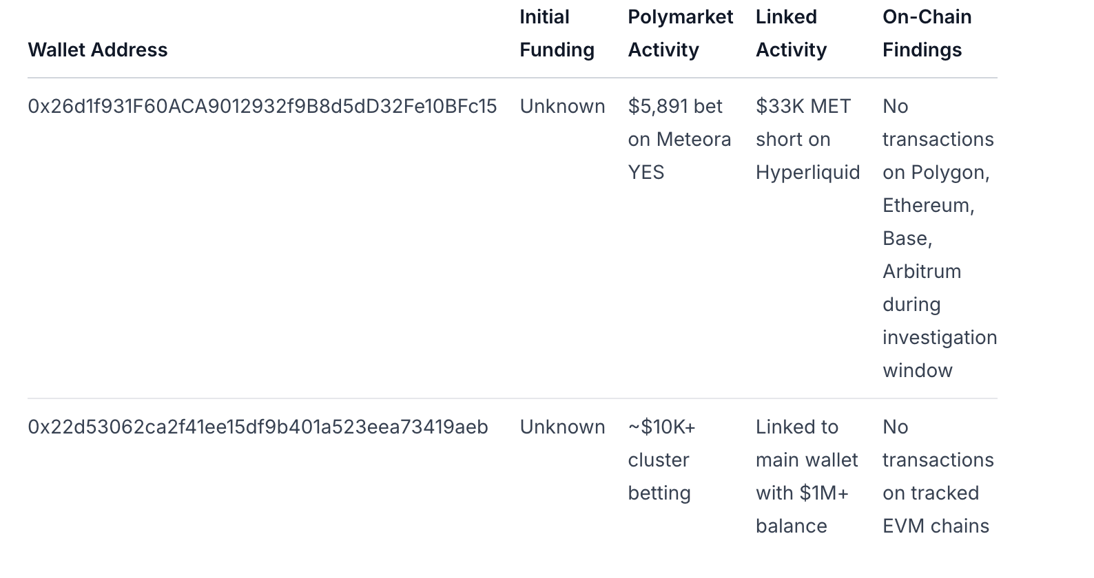 Critical Finding: Both wallets showed zero on-chain activity on Polygon (chain_id=137), Ethereum (1), Base (8453), and Arbitrum (42161) during the Feb 23-25 window. This suggests: