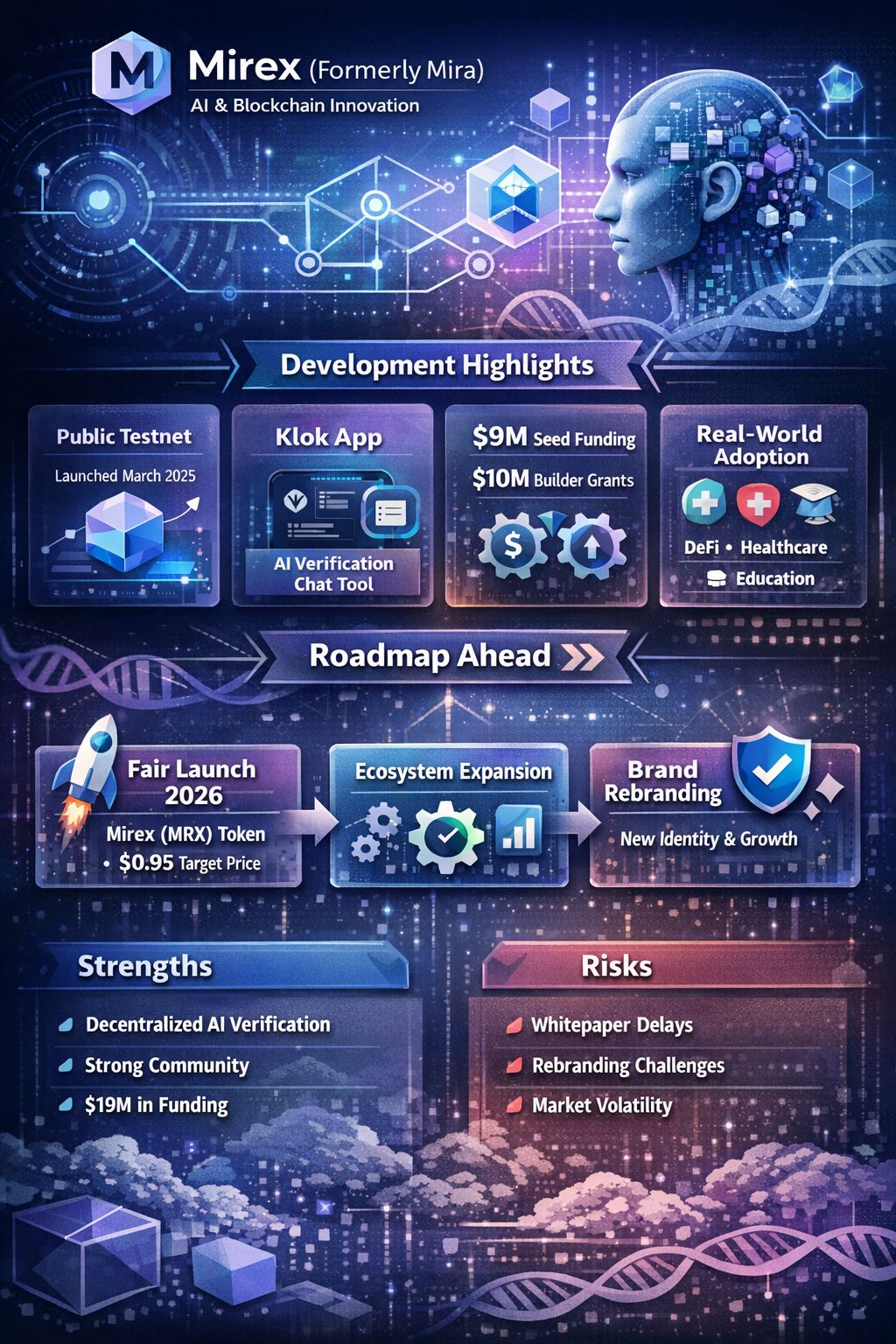 Mira — now transitioning to Mirex (@Mira - Trust Layer of AI MRX) — represents a fundamentally interesting project at the nexus of blockchain and AI verification. Its development has progressed from testnet to real user tools, backed by strategic funding and community engagement. The rebrand and fair launch strategy signal a shift toward long-term ecosystem stability over short-term speculation.