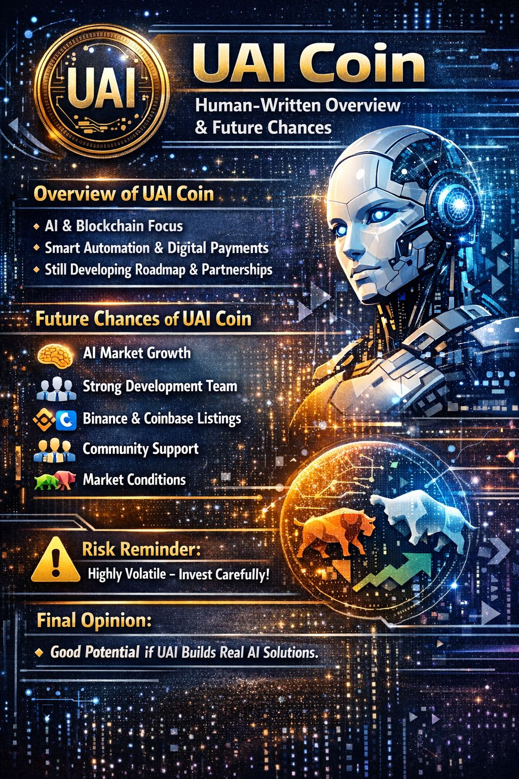 #UAI $UAI Coin is a digital cryptocurrency that appears to be connected with artificial intelligence (AI) and blockchain technology. Like many modern crypto projects, it aims to combine smart automation, decentralized systems, and digital payments into one ecosystem. The idea behind such coins is to use AI tools to improve efficiency, data processing, or smart contract execution within the blockchain network.