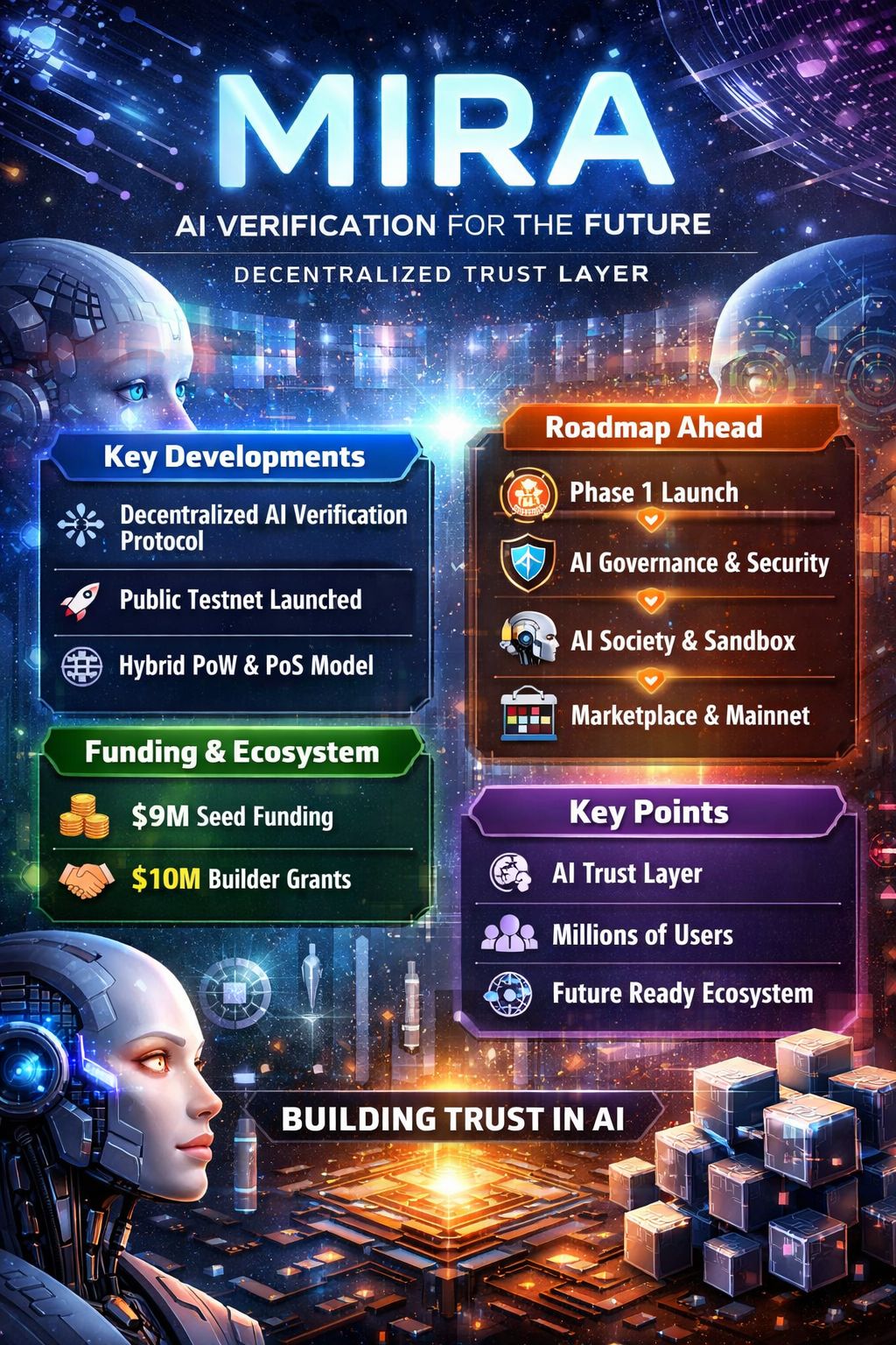 $MIRA is a blockchain‑powered token designed to support a decentralized verification layer for artificial intelligence (AI) — effectively a trust layer that ensures AI outputs are reliable and verifiable through consensus rather than centralized judgment. The project blends blockchain consensus mechanisms with distributed AI model validation to improve accuracy, reduce hallucinations, and offer a more trustable foundation for AI applications in real‑world contexts.