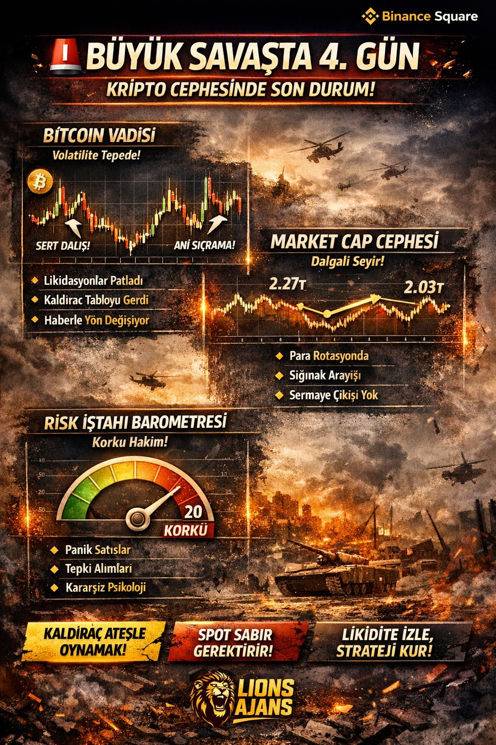 “Büyük savaşta 4. gün” ifadesiyle tanımlanan bu dönem, sadece fiyat volatilitesiyle değil; bilgi akışının hızı ve etkisiyle de kripto piyasasını şekillendiriyor. Binance Square, bu bilgi akışının merkezinde yer alarak hem piyasa algısını hem de yatırımcı davranışını doğrudan etkiliyor. Bilgi ve duyarlılık, bugün kripto piyasasında fiyat kadar önemli bir faktör haline gelmiş durumda.