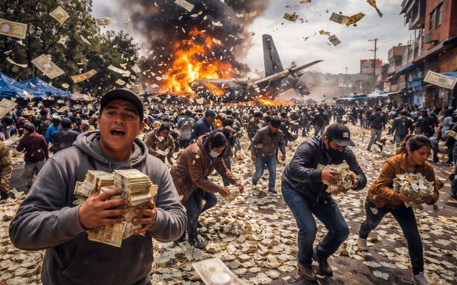 Imagine this: a military plane crashes near an airport — and suddenly it starts raining CASH from the sky! 💥