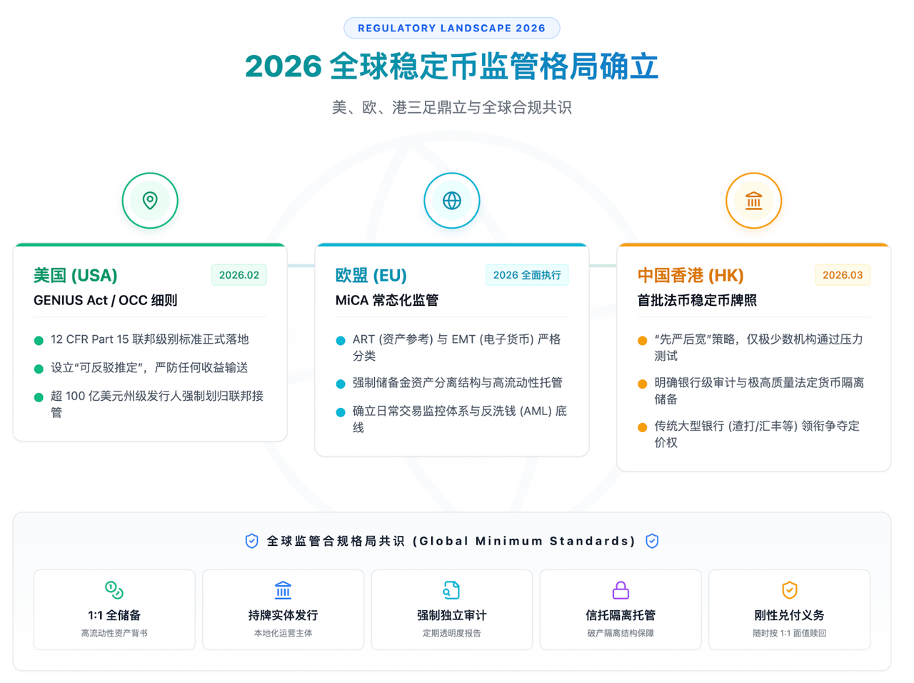 随着全球监管框架从“草案”实质性向“细则与执行”过渡,2026年的稳定币赛道正站在爆发式增长的前夜。一个清晰的演变趋势是,以大型传统银行和持牌机构为核心的“正规军”正全面接管核心发行权。