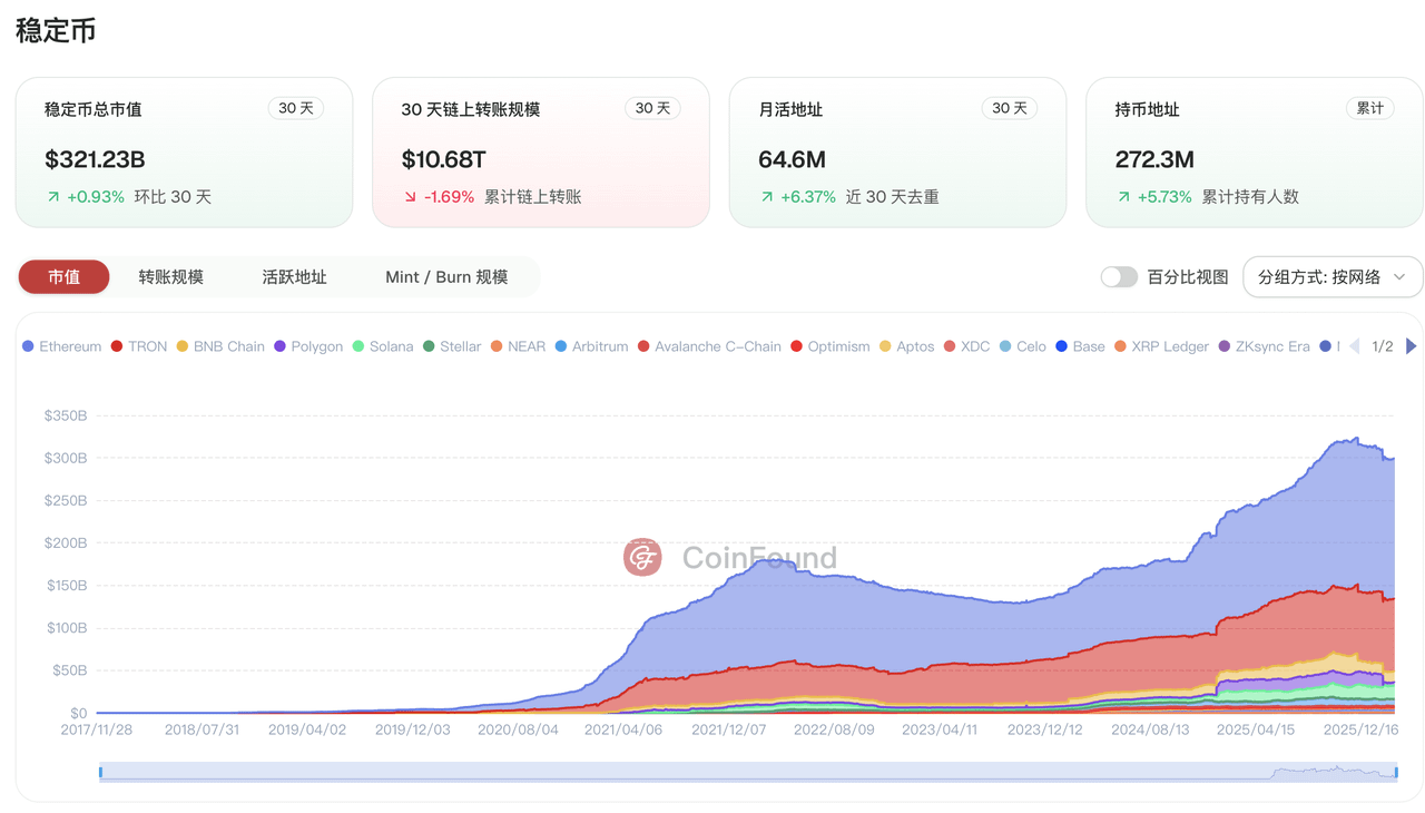 截至 2026 年 3 月初,全球稳定币总市值已突破 3200 亿美元,在整个加密资产市场中稳固占据了约 13% 至 15% 的核心份额。这一规模的达成,不仅标志着数字资产的法币价值锚定完成了实质性的基础积累,更意味着其底层流转机制正在重构全球支付与结算格局。