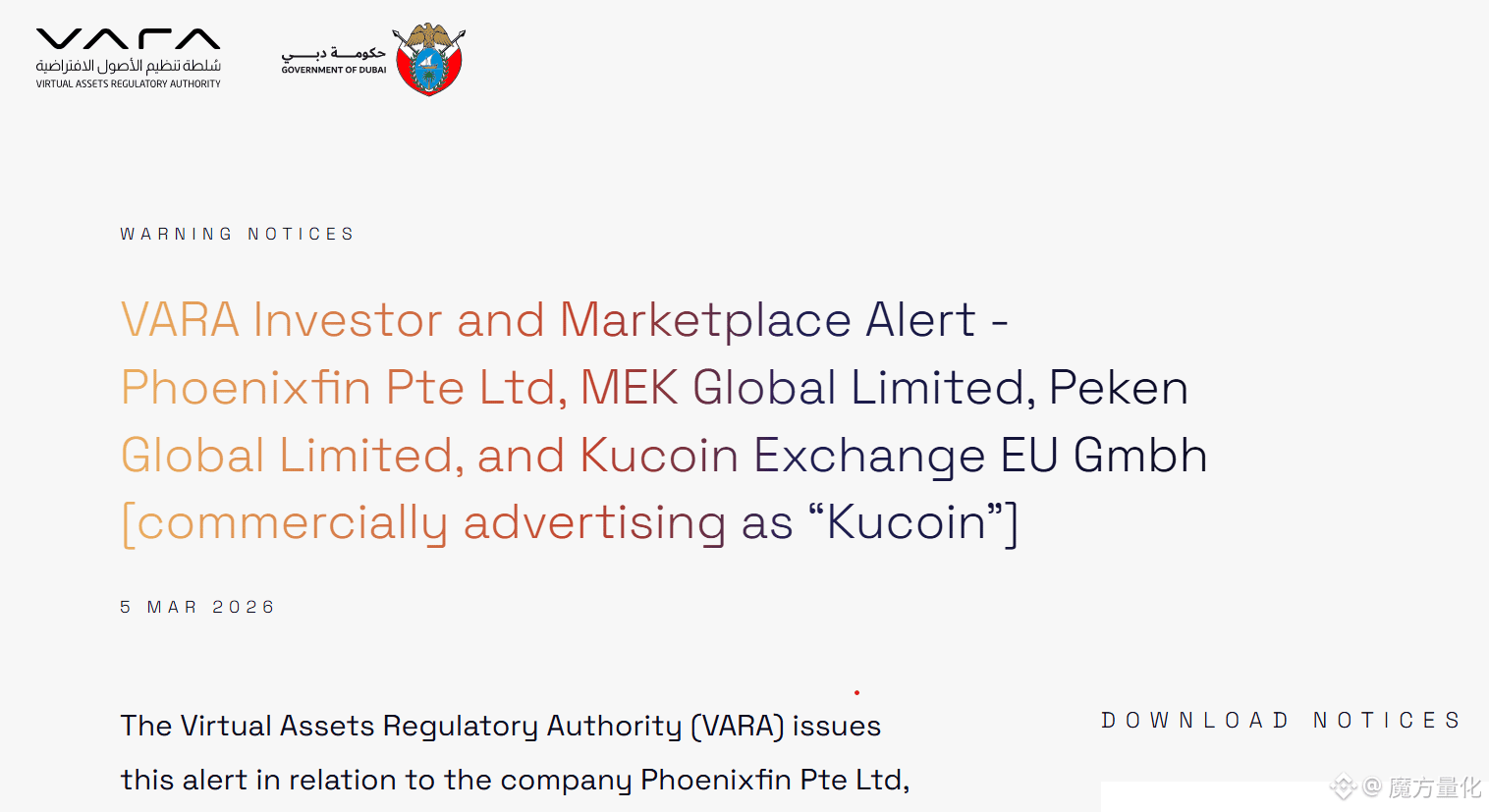 VARA 对 KuCoin 的警示。来源:VARA