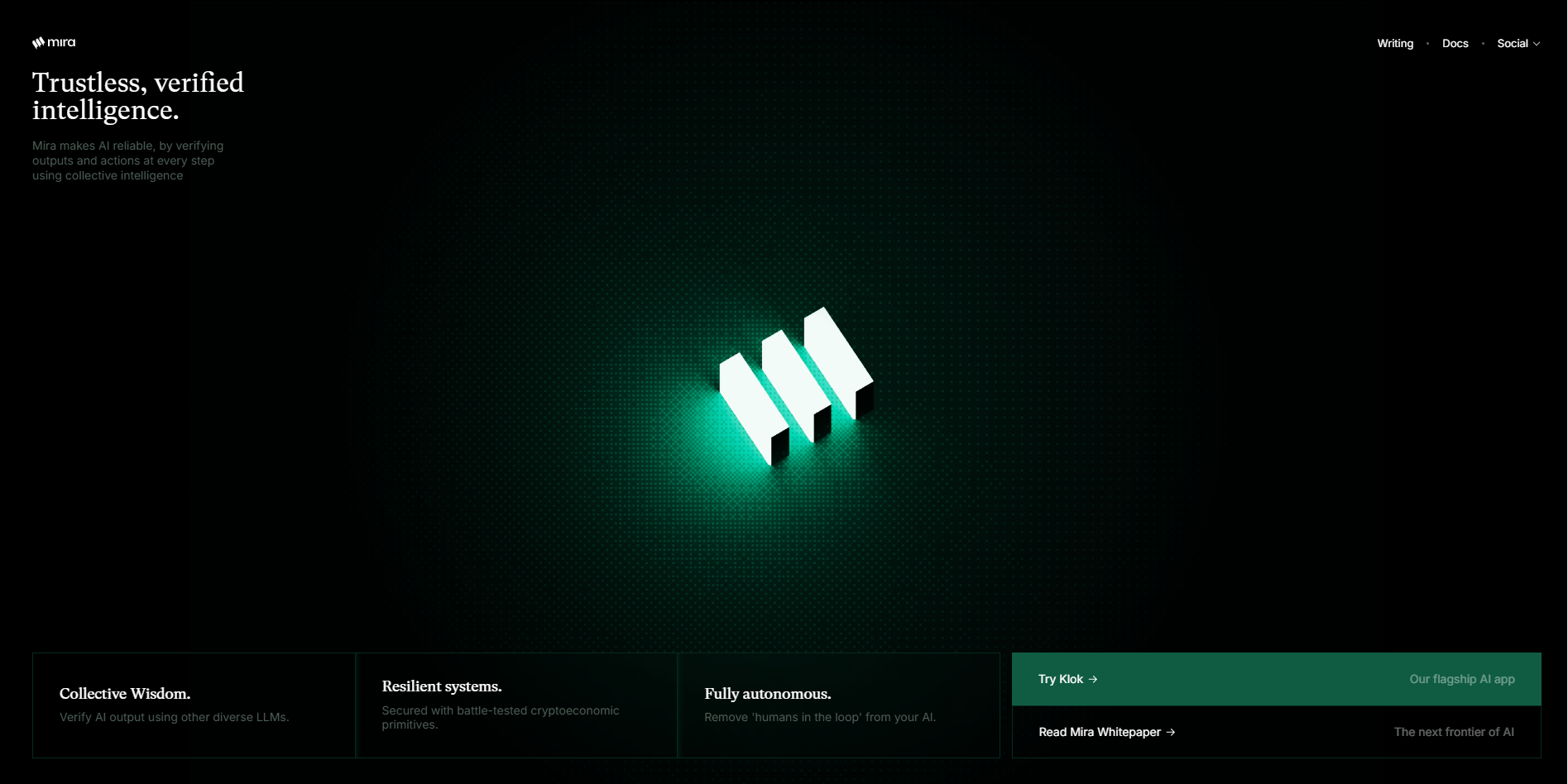 Hơn thế nữa, mạng lưới của Mira được bảo mật bằng các nguyên hàm kinh tế tiền mã hóa (cryptoeconomic primitives) đã qua kiểm chứng, giúp tạo ra các hệ thống kiên cường (Resilient systems). Đặc biệt, dự án hướng tới mục tiêu xây dựng các ứng dụng hoàn toàn tự động (Fully autonomous), loại bỏ sự can thiệp thủ công của con người (humans in the loop). Với mã thông báo $MIRA