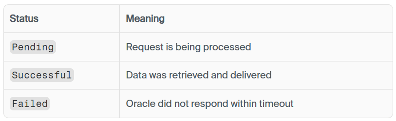 Every oracle request gets a unique tracking ID for correlation between queries and replies. Query status can be: