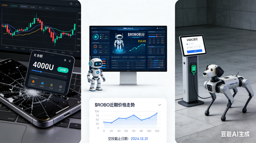 据CoinMarketCap数据,ROBO现报价约0.039美元,24小时交易量超9000万美元,市值约8770万美元。空投申领窗口延长至3月13日,综合评分450分以上的用户可领取。币安交易大赛正在进行,总奖池近200万枚ROBO。
