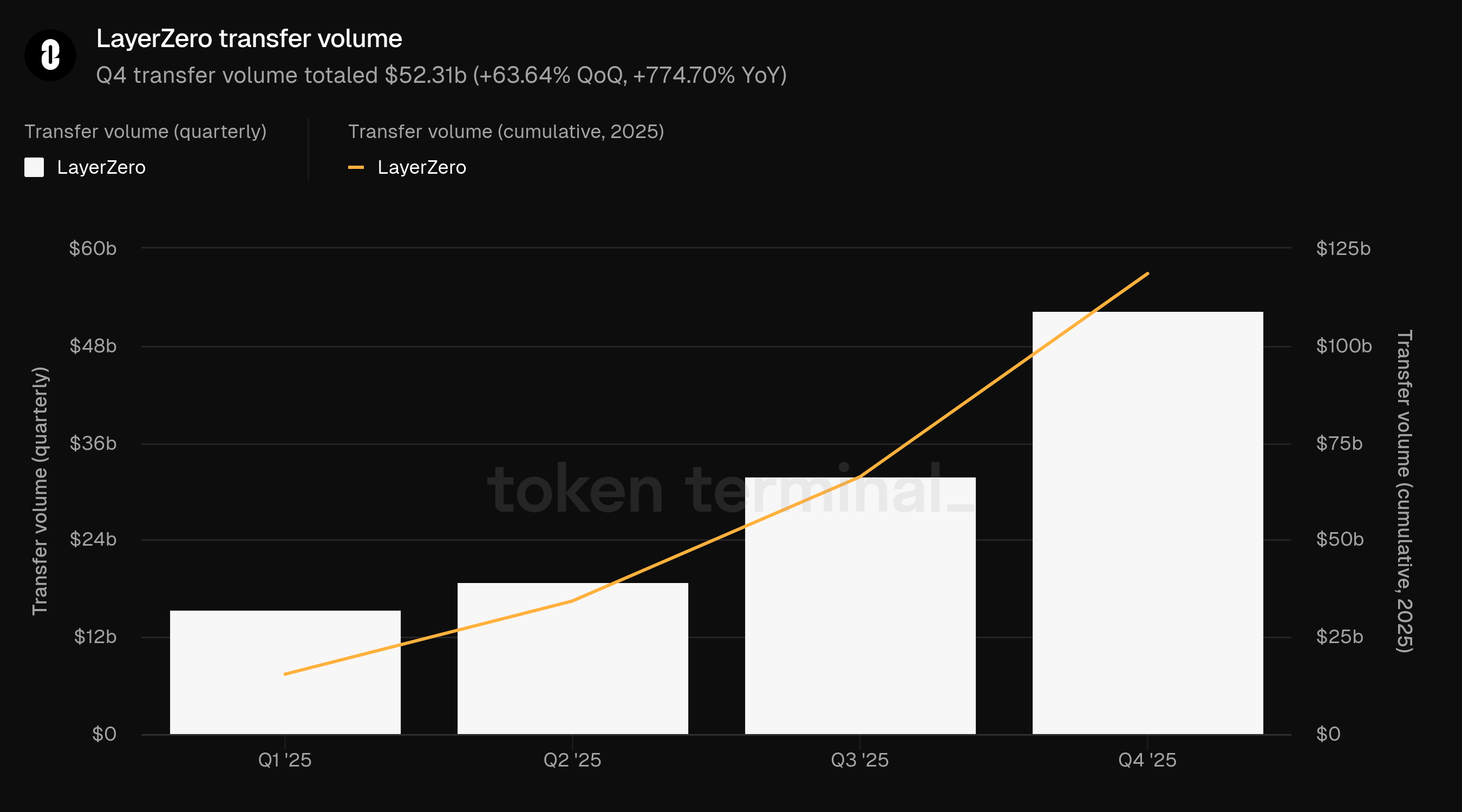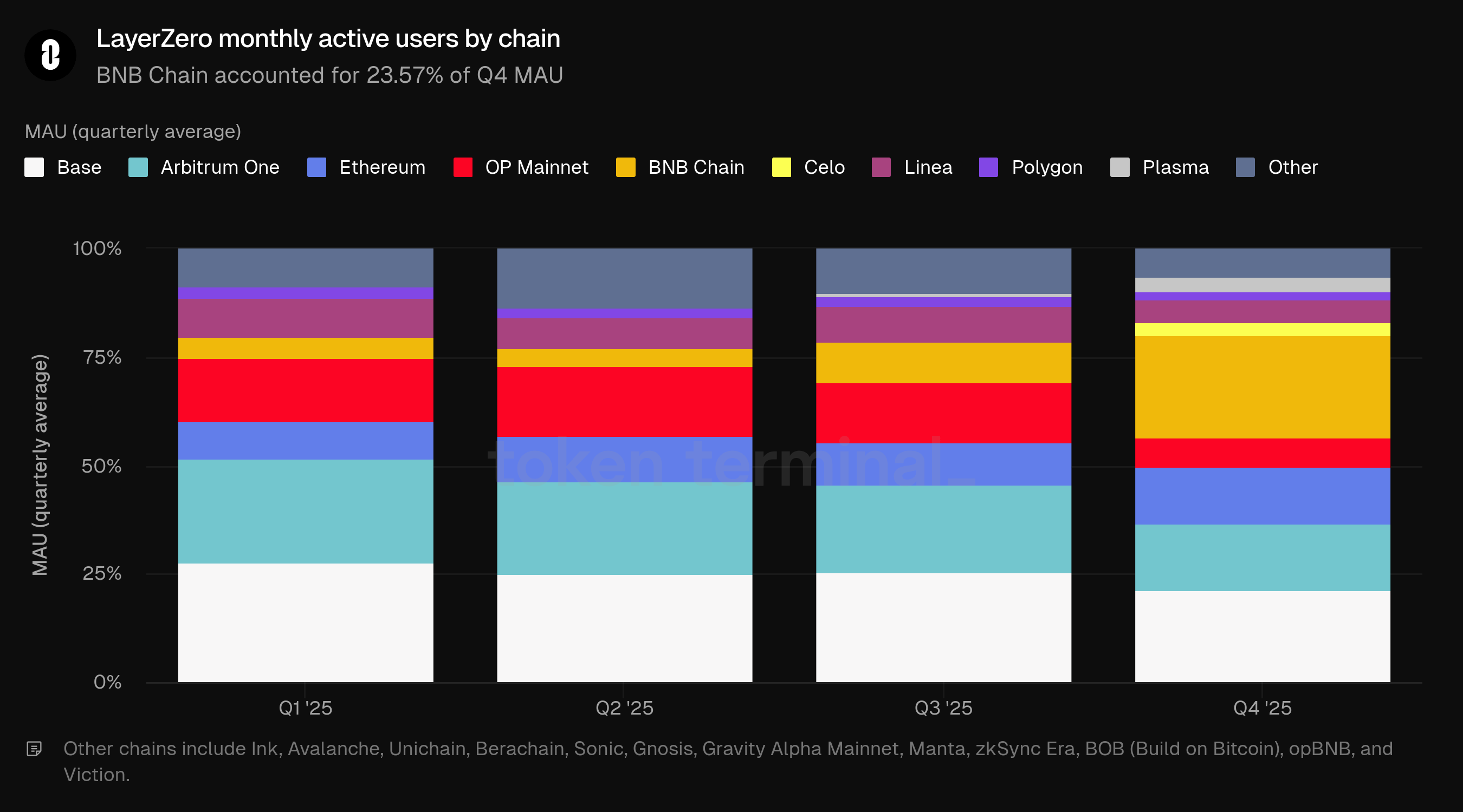This report is published quarterly and produced leveraging Token Terminal's end-to-end onchain data infrastructure. All metrics are sourced directly from blockchain data. Charts and datasets referenced in this report can be viewed on the corresponding LayerZero Q4 2025 Report dashboard on Token Terminal.