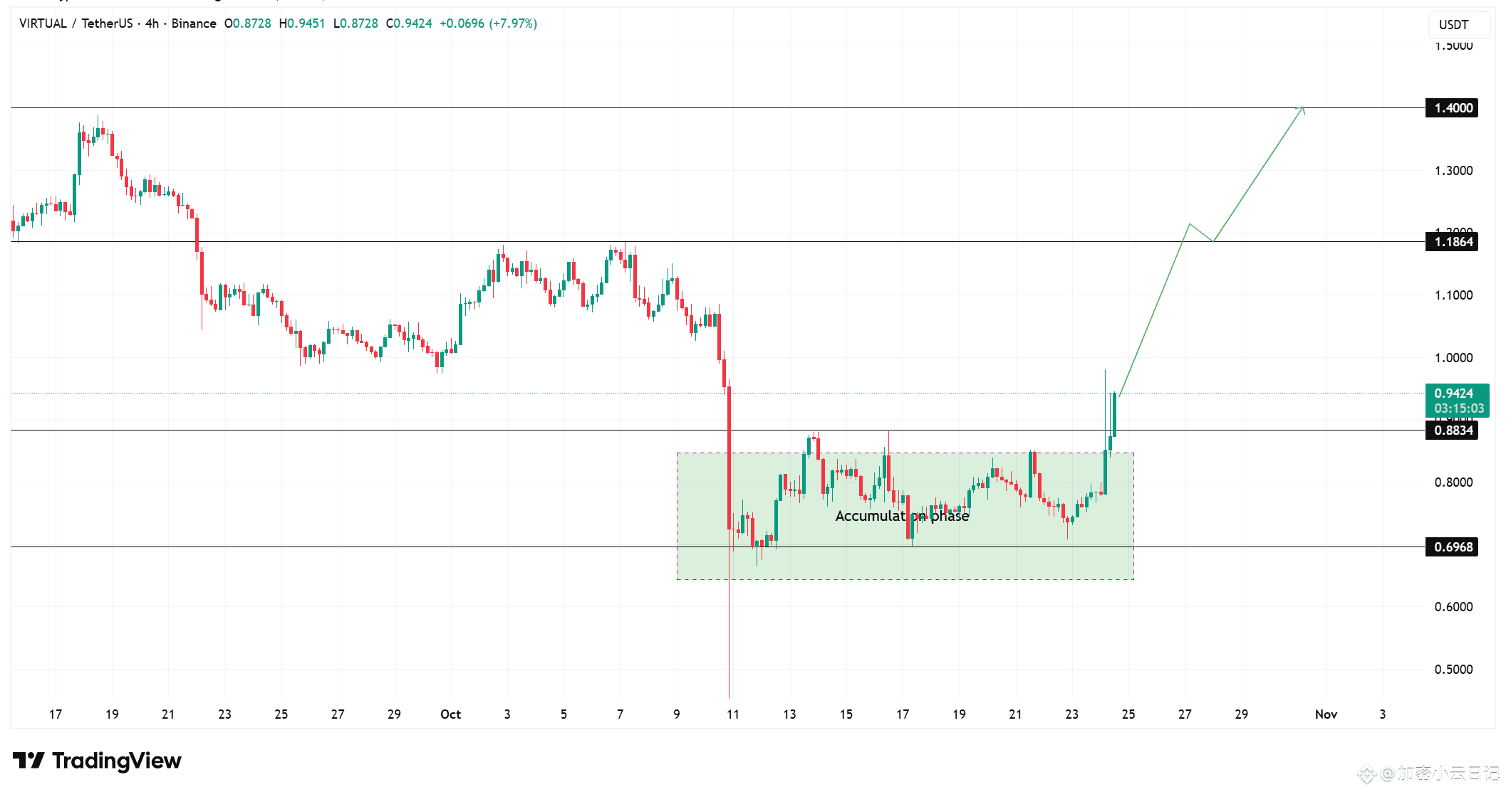 下一个阻力目标看向 1.18 美元与 1.40 美元,若能稳站 0.88 美元上方,则短线结构有望进一步强化。