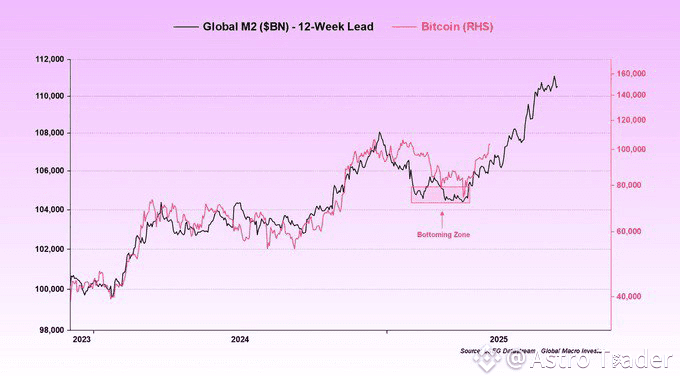 Let’s confirm it further with the global M2 money supply index, which $BTC has remained correlated with.