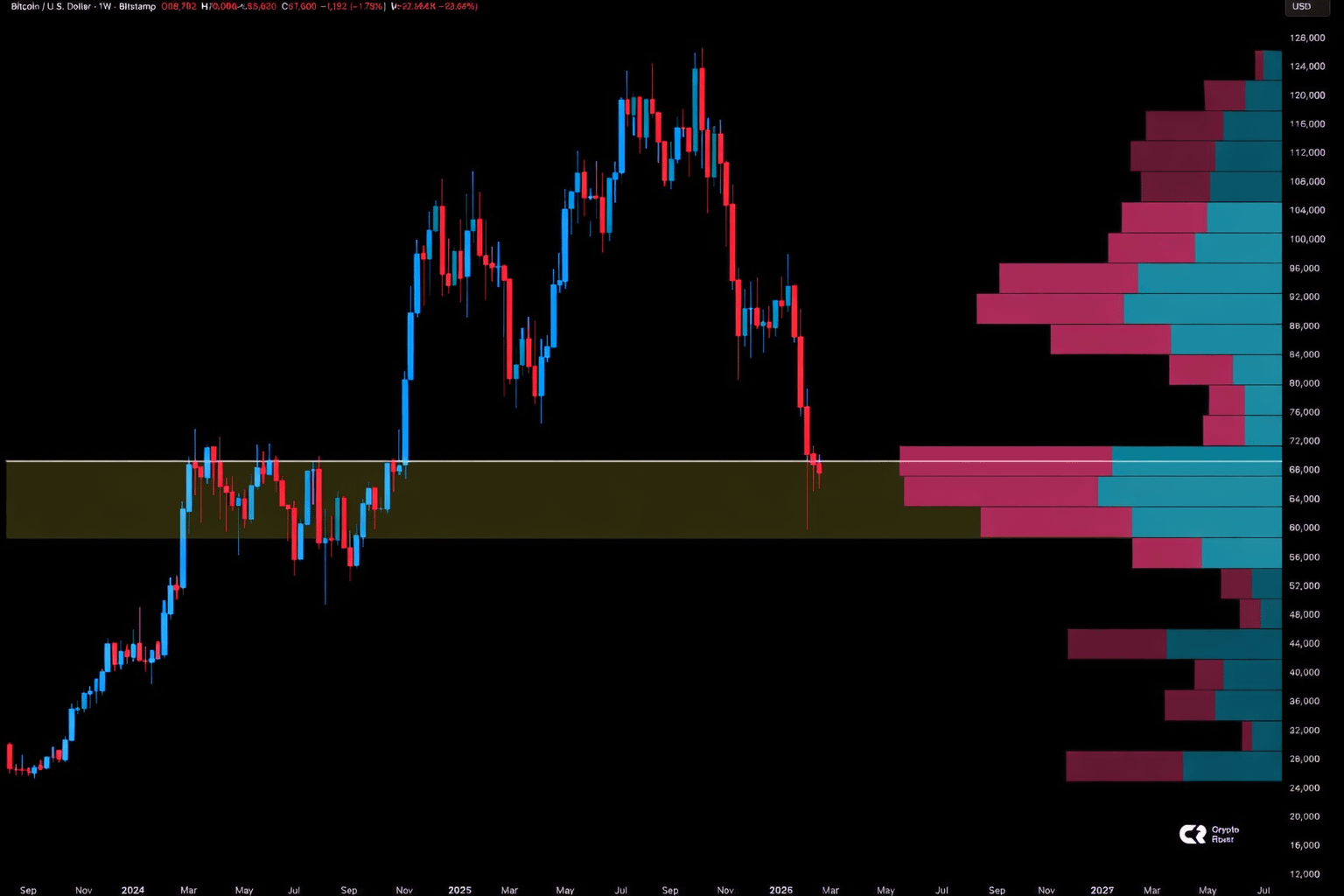 On-chain data shows that more than 400,000 BTC were accumulated in the $60,000–$70,000 range, creating a major support zone for Bitcoin.