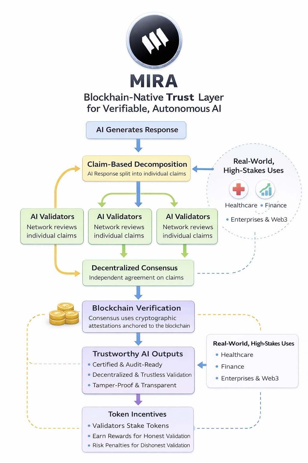 Mira’s system runs on trustless consensus. No central authority calls the shots,and no single AI model gets to play oracle.Reliability comes from distributed agreement, cryptographic anchoring,and incentives that keep everyone honest.This is especially crucial for autonomous AI agents in decentralized worlds,where their decisions could trigger smart contracts or financial moves on their own,without humans in the loop.