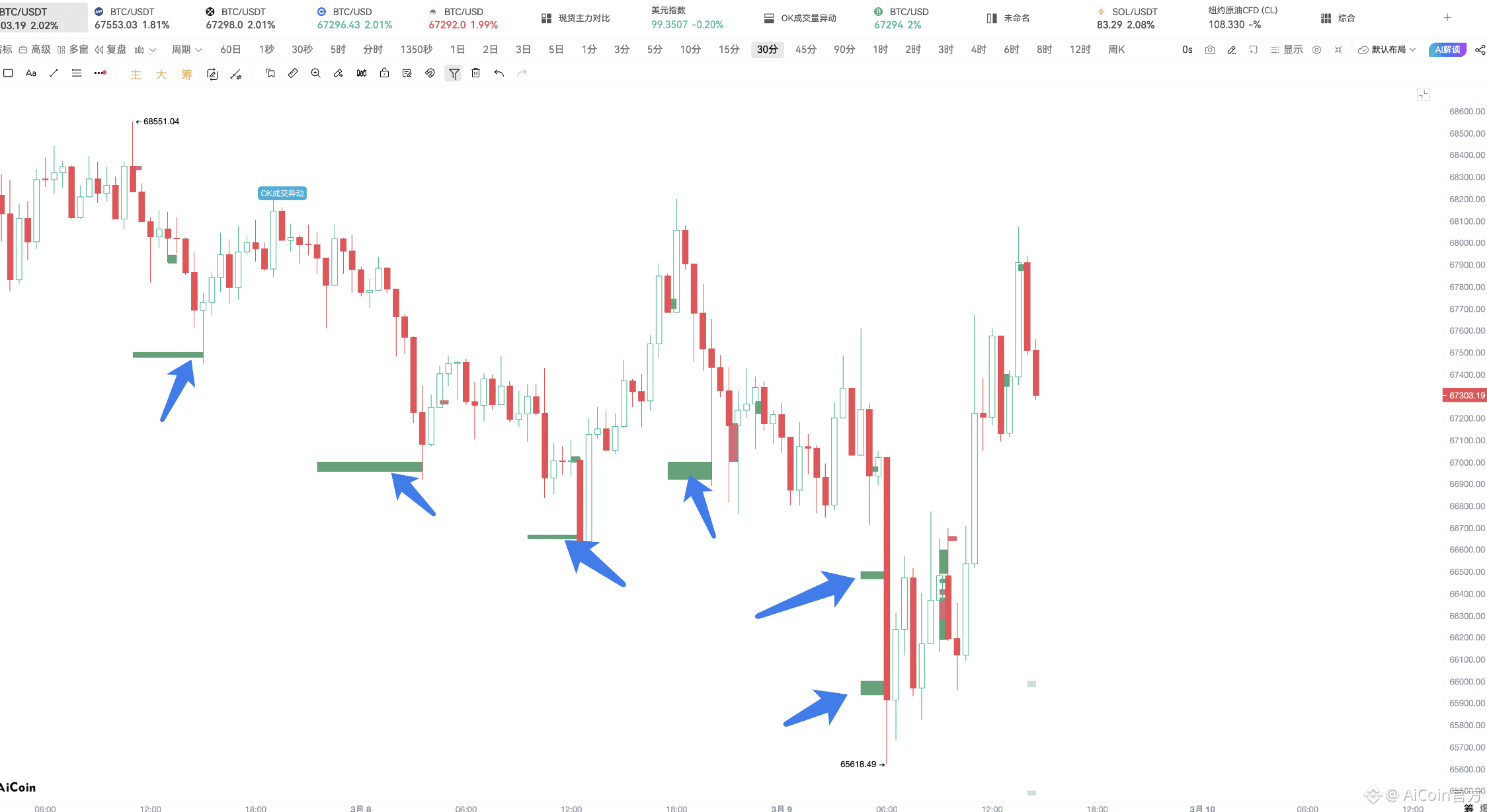 OKX:盯 15:00-16:30 成交量异动