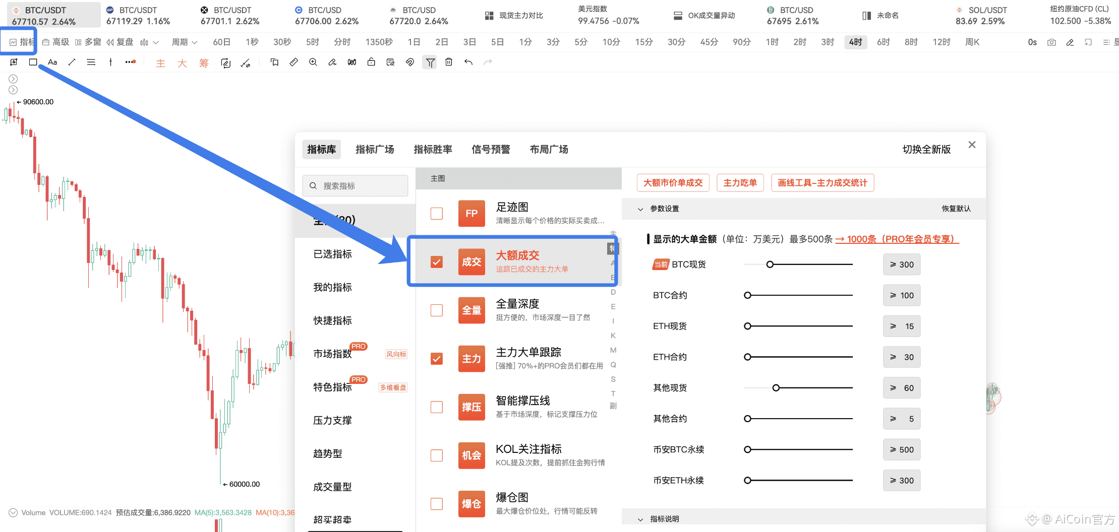 跟大家说明下:上面这些数据,全来自 PRO 版的【大额成交】指标,专门用来精准跟踪大户的市价成交行为。
