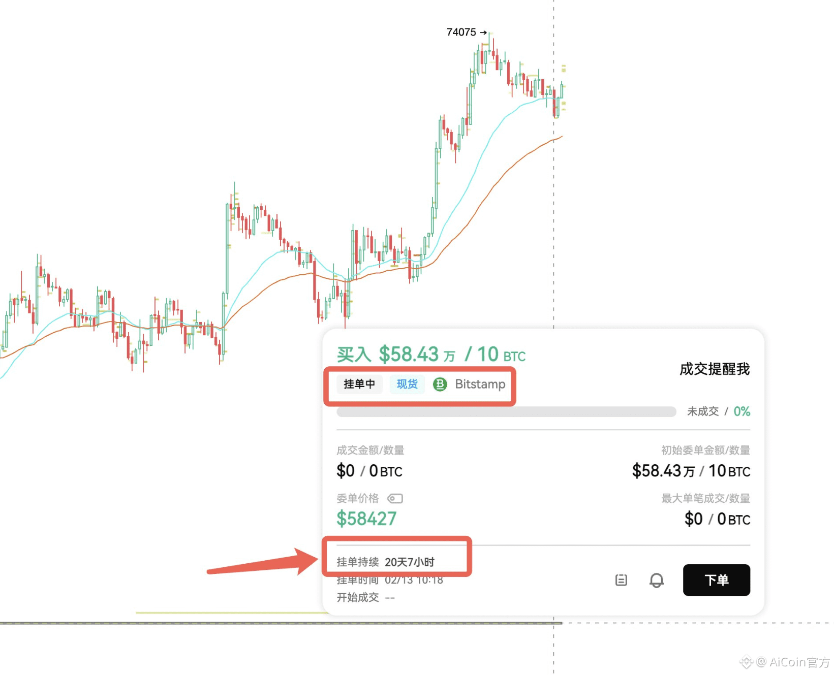 这里跟新手说个小逻辑:挂买单成交前,价格是要先跌的,只有价格砸下来,挂单才能成交。