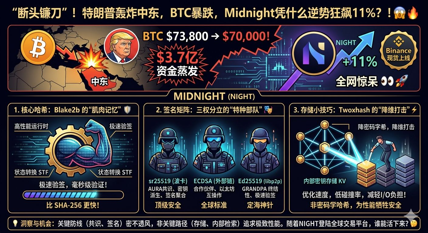 Midnight 的设计逻辑非常明确:关键防线(共识、签名)密不透风,非关键路径(存储、内部检索)追求极致性能。