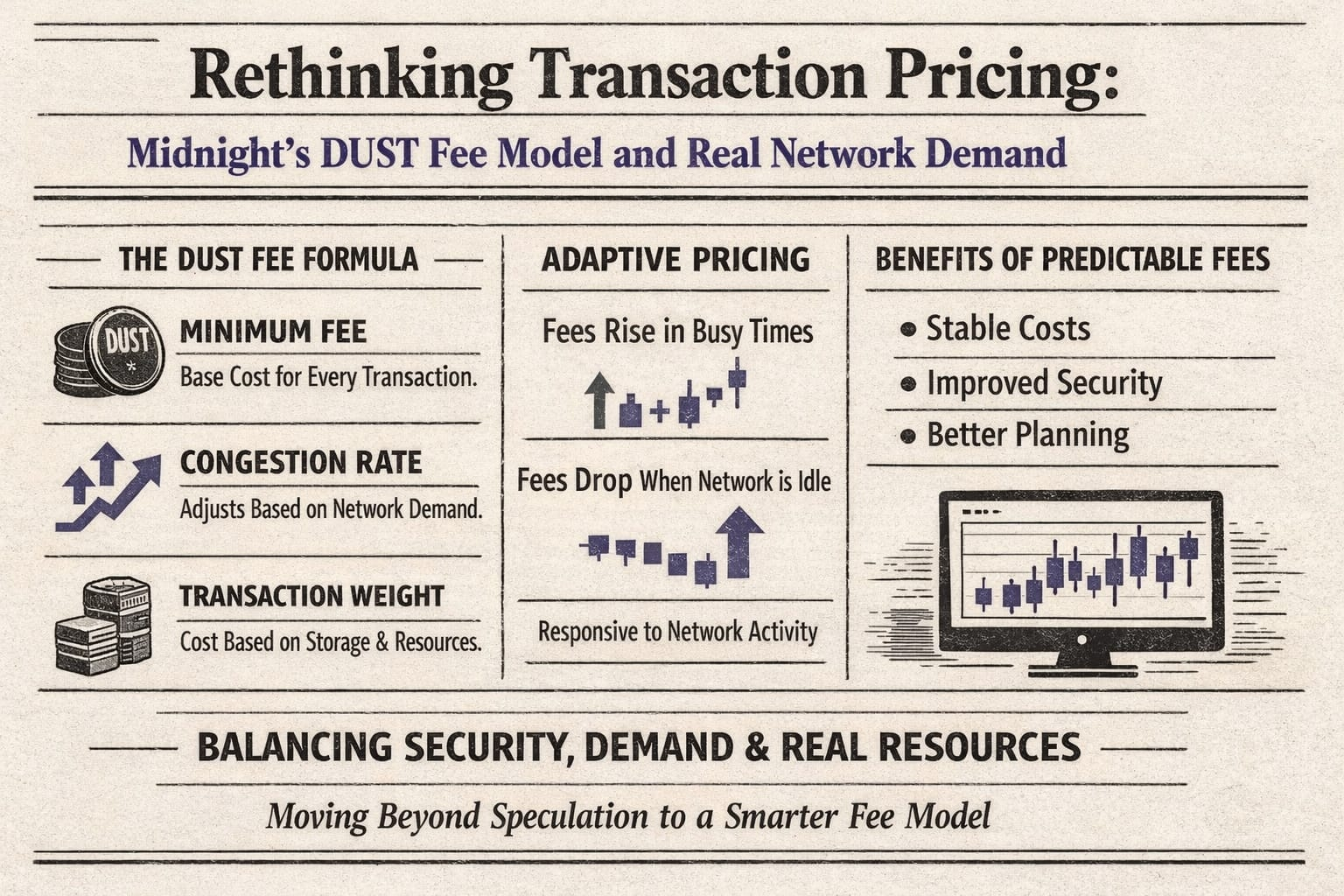 Midnight aims to sidestep some of these problems.It uses a system based on DUST a resource connected to the NIGHT token.Transaction fees aren’t just speculations;they’re structured and tied to actual network activity.The fee has three parts:a minimum fee,a congestion rate,and transaction weight.