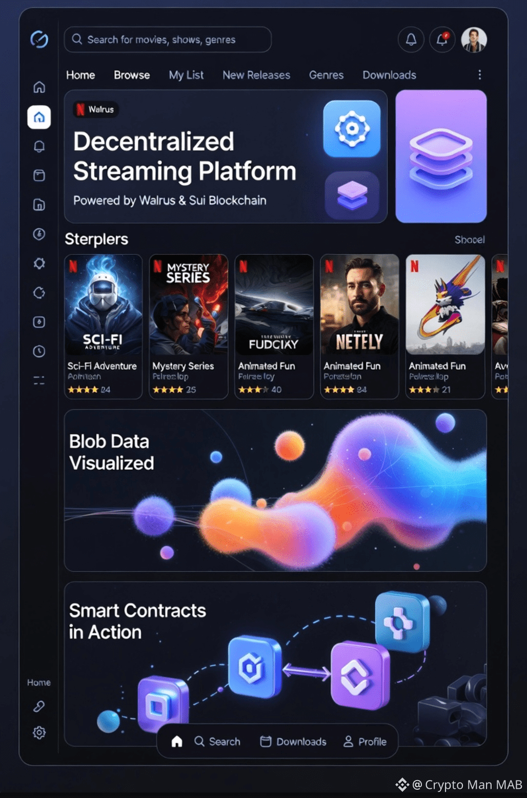 Content Discovery & Metadata -- A frontend (potentially hosted as a Walrus Site for full decentralization) indexes blobs with searchable metadata, recommendations via on-chain algorithms, or AI agents.