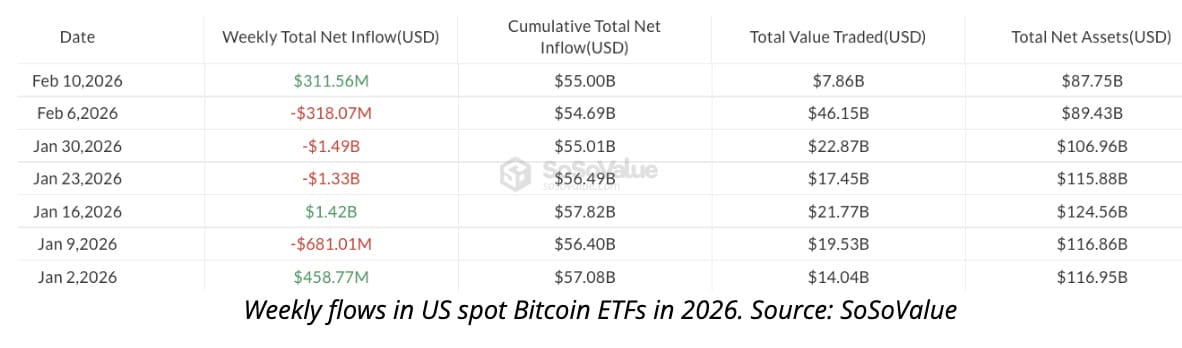 U.S. spot Bitcoin exchange-traded funds extended their recovery this week, posting fresh inflows that nearly erased last week’s losses, even as Bitcoin prices remained under pressure.