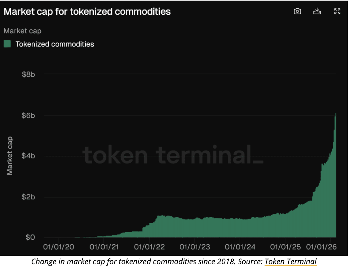 Growth has been overwhelmingly driven by tokenized gold products, which now account for more than 95% of the tokenized commodities market.