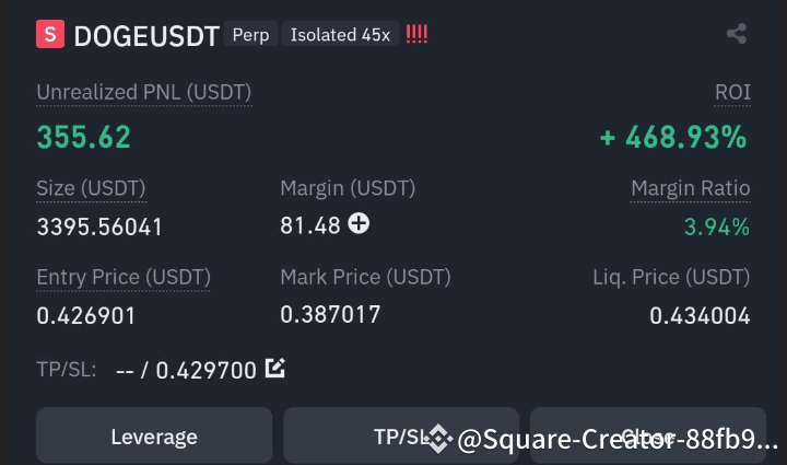 Using a 45x leverage in an isolated margin position allows for amplified returns, but it also comes with increased risk. That's why I've set a relatively tight stop-loss at 0.429700, which is just above my entry price. This helps to limit potential losses if the trade moves against me.
