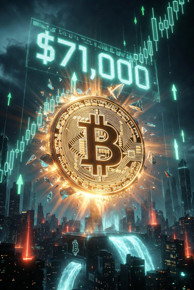 Yep, you read that right. As I'm typing this, BTC is dancing around the $71K mark (hovering between ~$70.8K–$71.2K depending on the exchange you're watching), and the momentum feels electric. After that stomach-dropping dip earlier this week where it briefly kissed the low $60Ks, the bulls came roaring back with serious conviction.