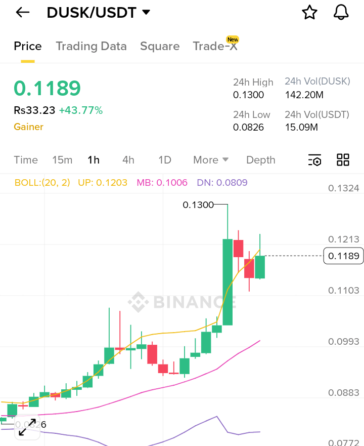 $DUSK has shown a strong price pump driven by a combination of technical breakout and renewed market interest. On the chart, price clearly breaks above the middle Bollinger Band and pushes toward the upper band, which often signals strong bullish momentum. The recent move came with rising volume, confirming that buyers are actively participating rather than this being a low-liquidity spike. After consolidating for a long period, $DUSK finally attracted momentum traders looking for high-percentage movers, which accelerated the upside move.