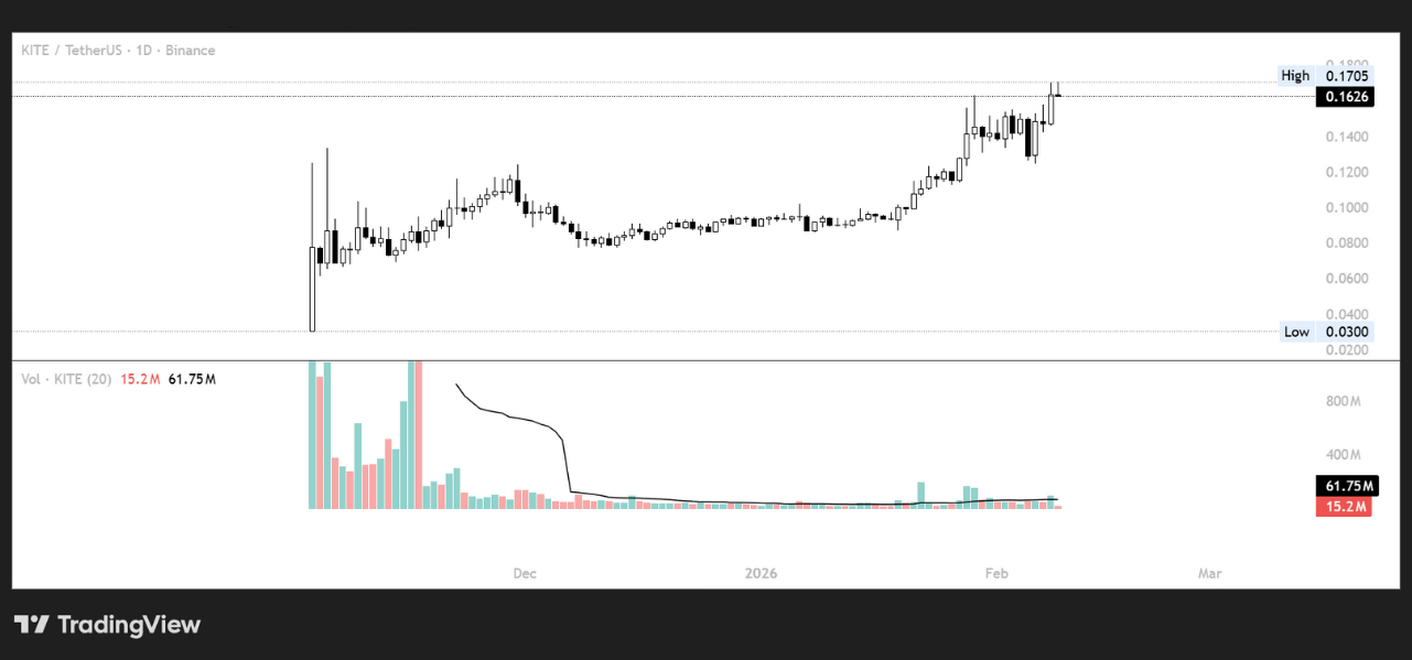 Technically, Kite AI is currently in a high-momentum "price discovery" phase as it approaches its recent all-time high (ATH).