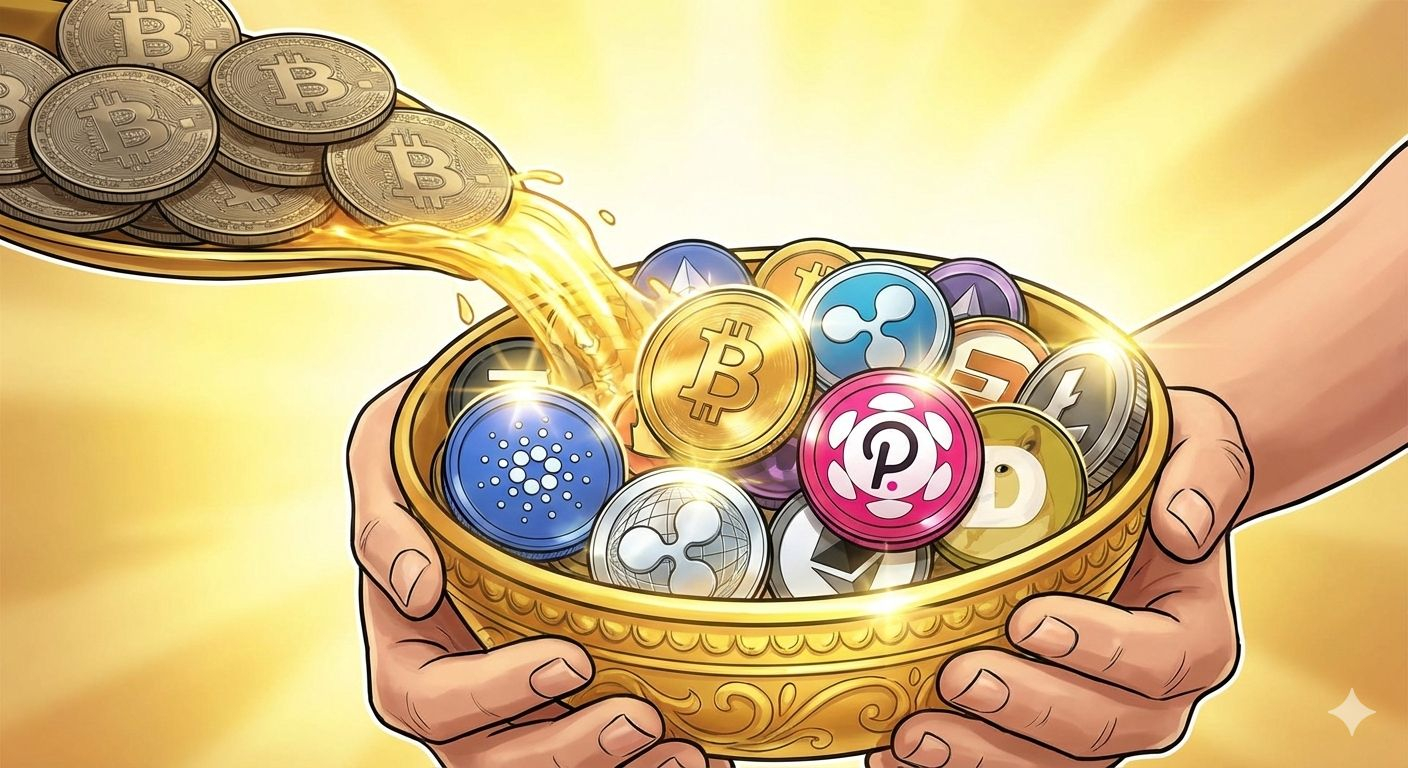 Think of it like a "Seesaw": investors sell their BTC to lock in gains, then pour that cash into smaller coins. Because these smaller tokens have lower liquidity (less money available), even a small amount of buying pressure from "Bitcoin profits" can cause their price to skyrocket instantly.