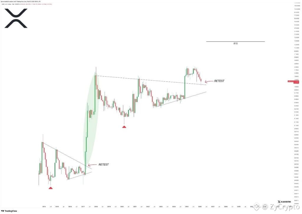 Meanwhile, analyst Javon Marks highlighted XRP’s bounce following a successful retest of prior resistance, an area that has historically preceded major upside moves. According to Marks, similar setups in the past have led to significant breakouts toward measured move targets.