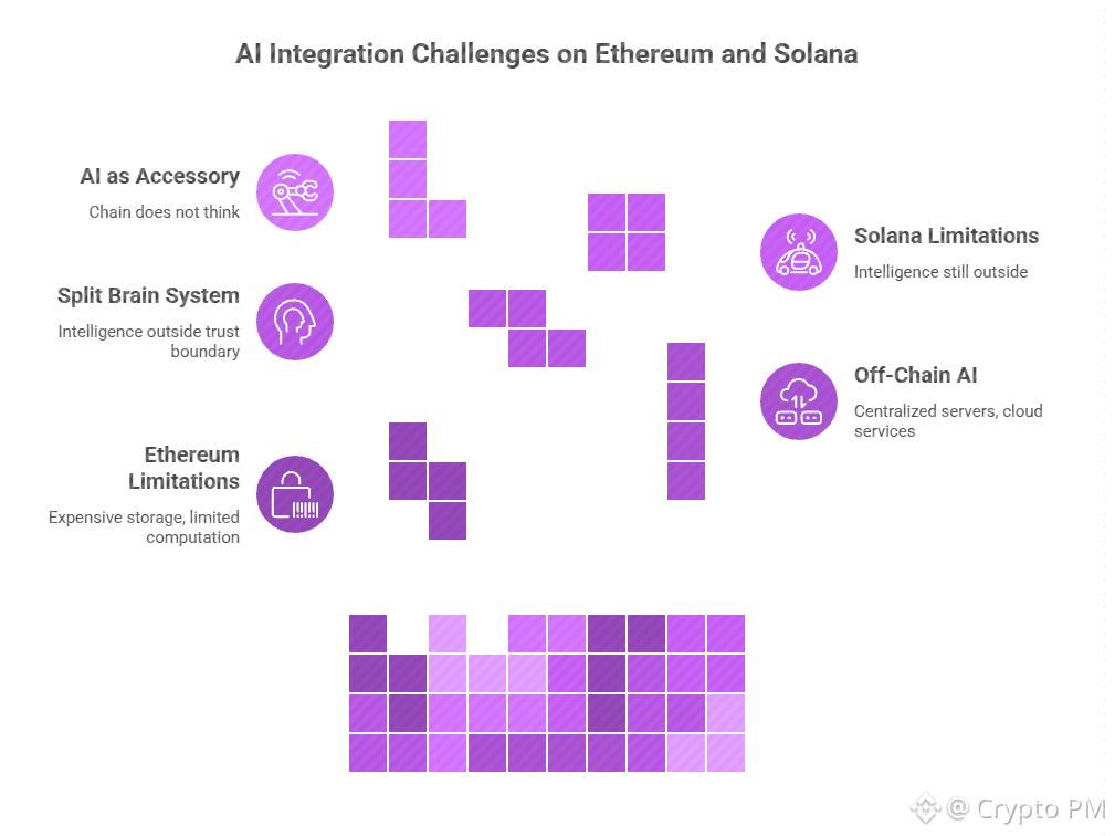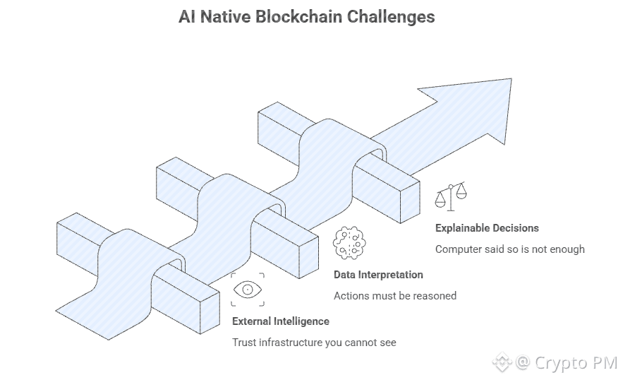 An AI managing payments or documents or compliance cannot work well if core logic lives outside chain. Off chain AI breaks verifiability. Once intelligence external you trust infrastructure you cannot see or enforce.