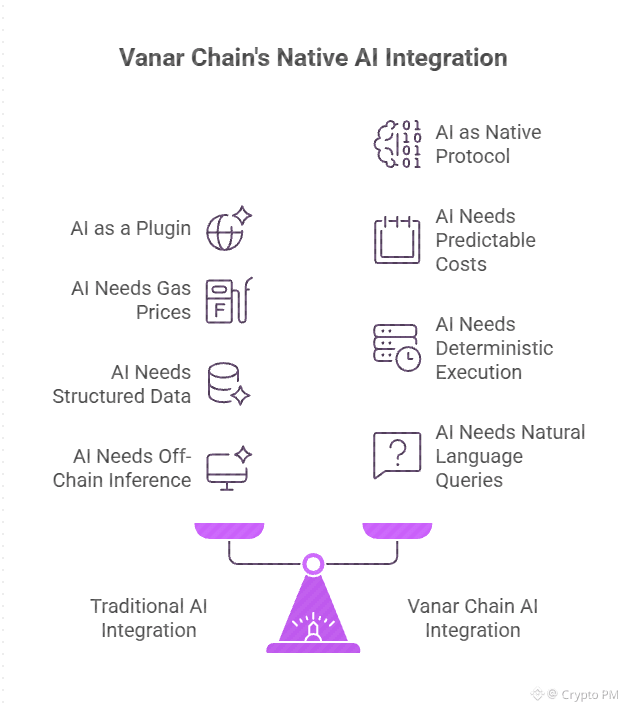 Instead of adding AI later, Vanar put intelligence into protocol itself. Kayon is not a plugin or service you call from outside. It is part of the stack. Applications can ask natural language queries to chain, automate compliance, trigger workflows without calling off chain inference.