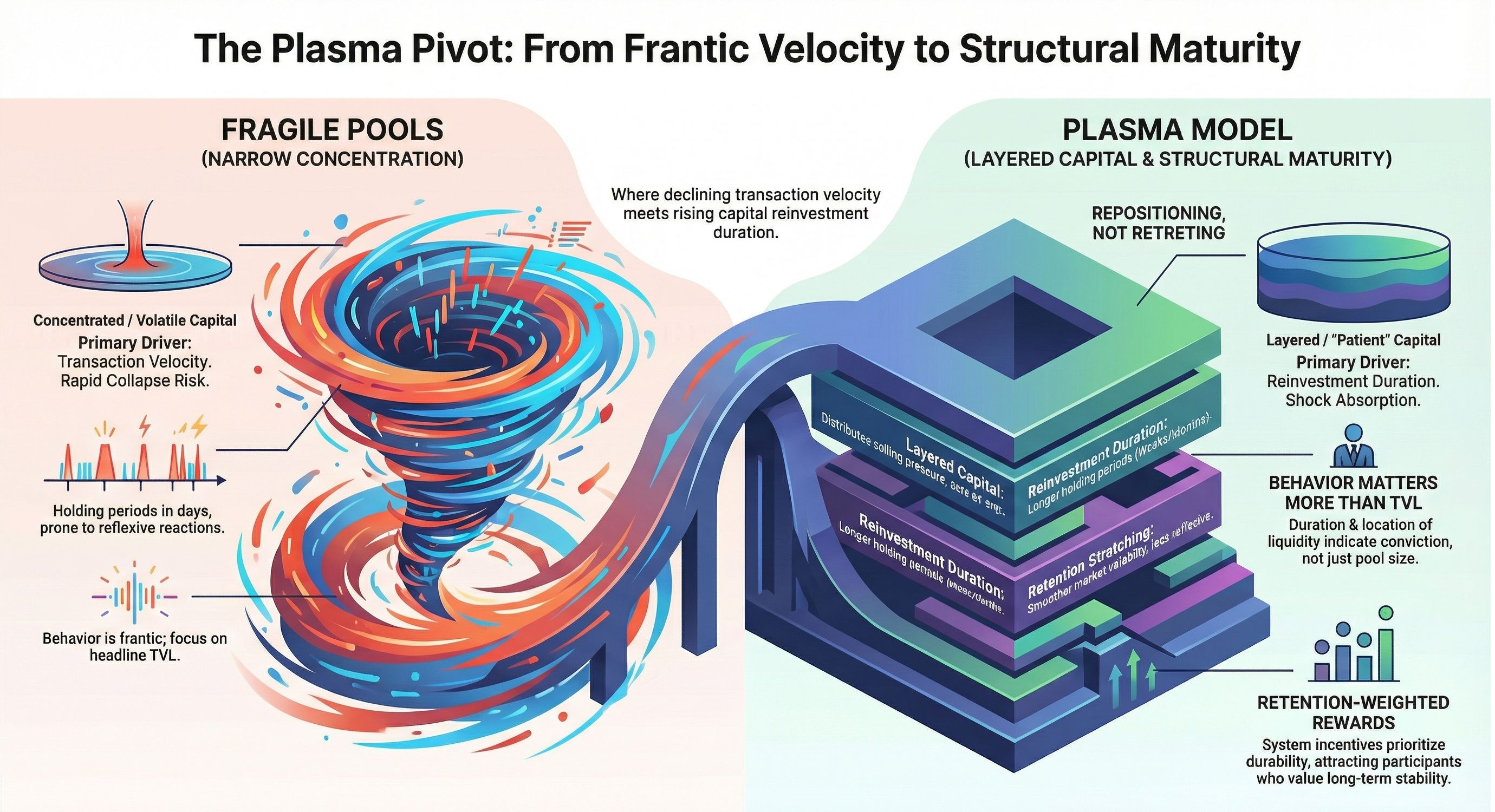 Plasma’s incentives are part of this. They reward durability more than constant repositioning. Although this modification appears minor, it fundamentally alters the underlying structure of the pools.