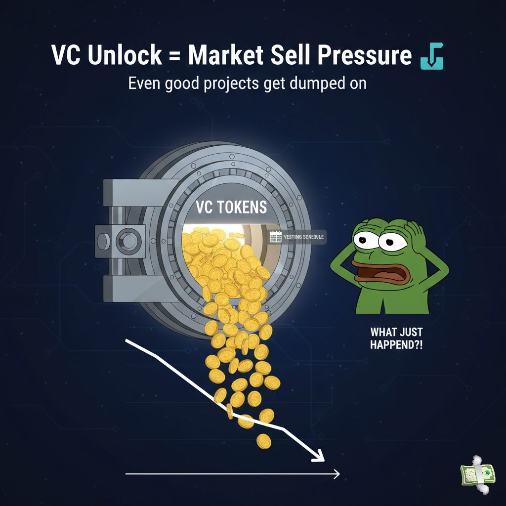 4️⃣ VC Unlock Cycles (The Institutional Dump)