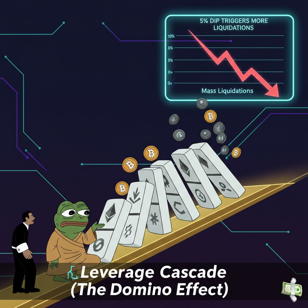 1️⃣ The Leverage Cascade (The Domino Effect)