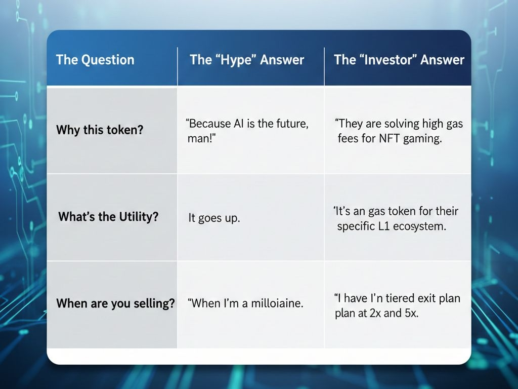 The Golden Rule: If you can’t explain what the project does without using the words "AI," "Revolutionary," or "Moon," you shouldn't be holding the bag.