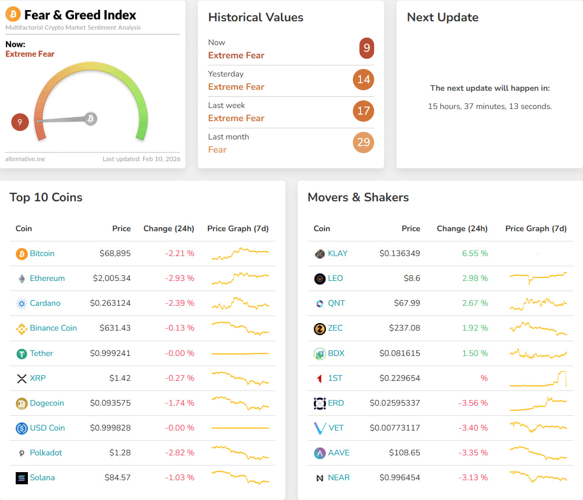 • Fear and greed index: 9 (extreme fear) — panic at 2022 levels, investors in complete despair.