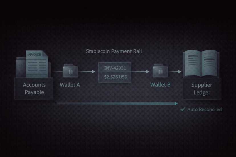 Consider now stablecoin settlement in which the transfer is intended to be invoice-level clean every time. Not as a sloppy memo field, to be read by humans, but as formal data, readable by systems. That changes everything: