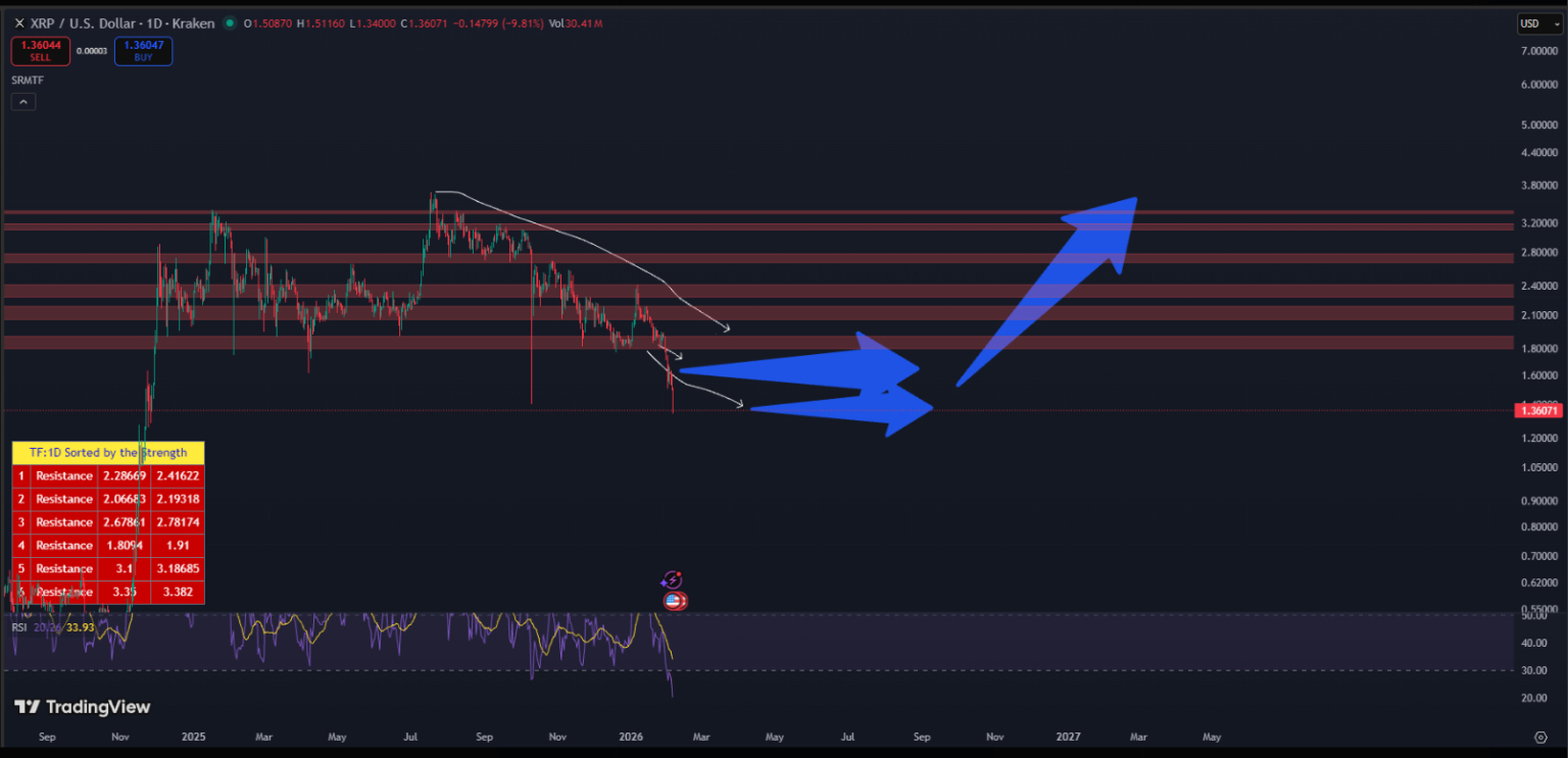 XRP’s recent slide has left traders asking whether the worst is over. Prices have been weak since Q4 2025, and reports say the token has lost roughly half its value from an October opening near $2.80 to about $1.42 as we speak. That drop came with a sharp move in momentum indicators, which traders rarely ignore.