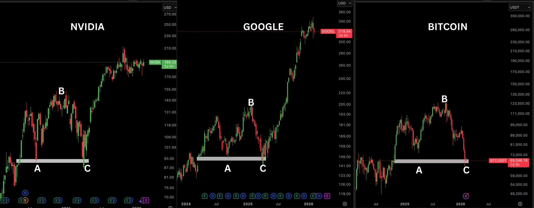 Bitcoin’s recent weekly price movement looks very similar to how major tech stocks have been trading since 2025. The pattern, pace, and structure are closely aligned, suggesting that Bitcoin is following the same market rhythm.