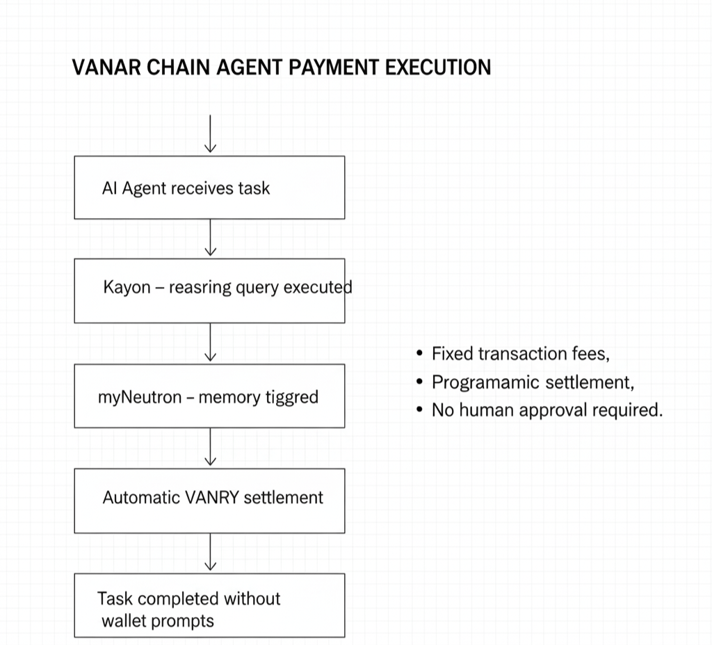 What stood out was how payment settlement wasn't treated as a separate feature to add later. It was infrastructure, built into how Vanar operates from the beginning. Every Neutron seed creation requires VANRY settlement. Every Kayon query burns VANRY upon completion. Every Flow execution settles automatically when conditions are met.