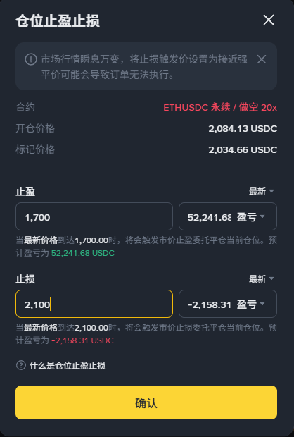 操作指引: 认准这张 $ETH 的界面!只有简单的“止盈”、“止损”两个框。