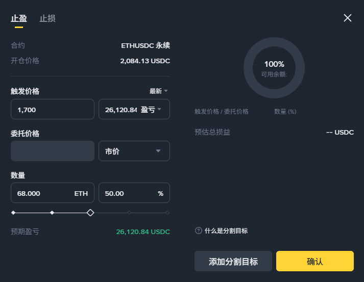 适用场景: 这是给老手做“分批止盈”用的(比如 $ETH 到了 1700 止盈一半)。新手慎用!