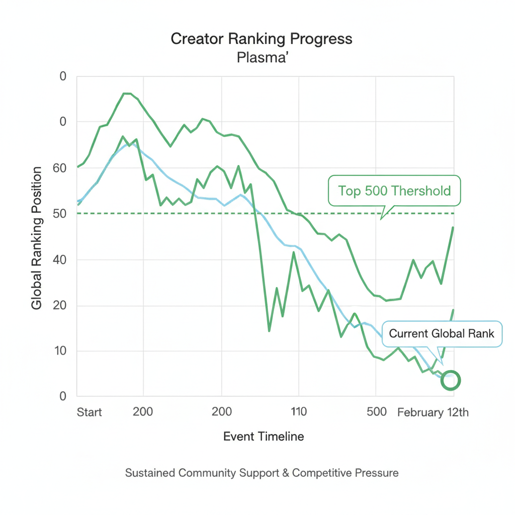 I just checked the backend numbers for the @Plasma creator ranking event, and wow… we're sitting at fourth globally and solidly in the top three in the Chinese rankings. That's huge! But man, holding this spot until the event wraps up on February 12th is no joke—the pressure is real. Every up and down in the rankings or the price, you guys have been right there in the comments, cheering me on, pushing likes, sharing vibes. It means everything. Seriously, thank you.