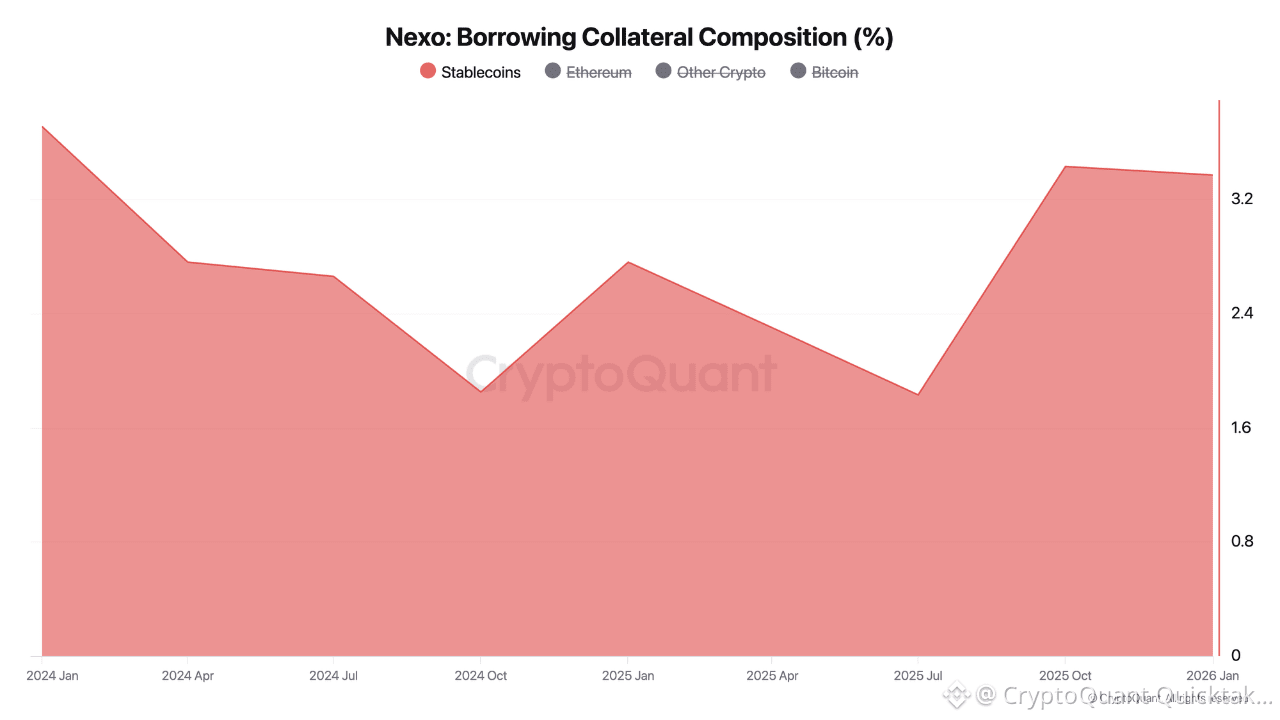 Stablecoins now account for a larger share of borrowing collateral on Nexo, rising from 1.8% to 3.3% since July 2025.
